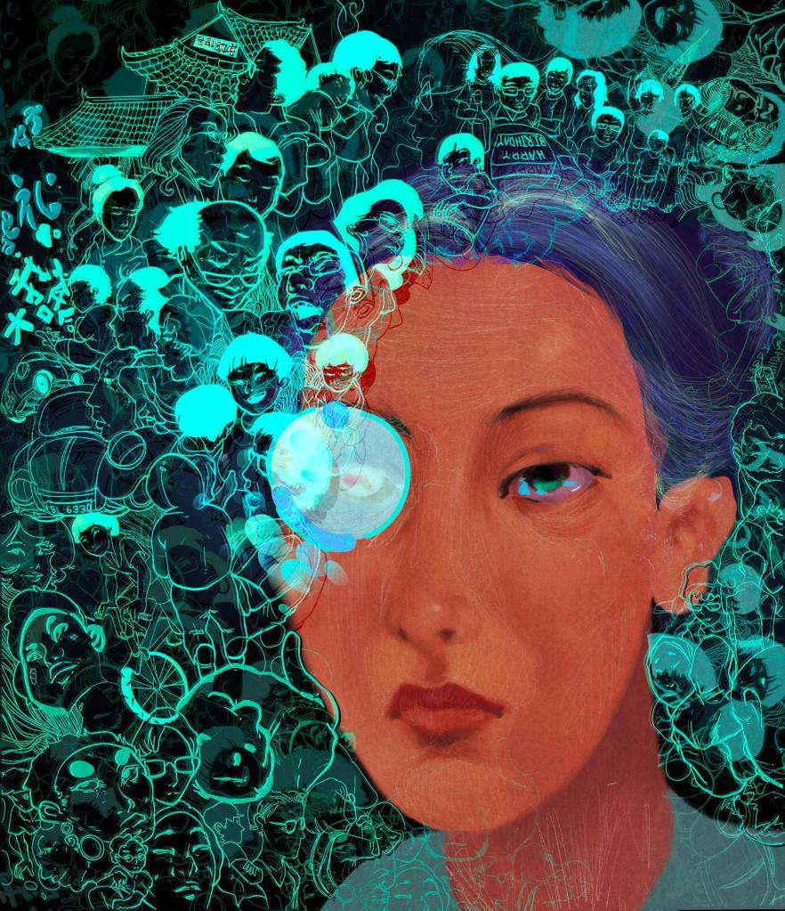 According to studies, the older memories are the last to go away. While the main image could be an imagining of how my mother-in-law sees herself, the rest of of the images are done to look more fluid because memory is fluid. You can see impressions of their family car at the time, her early memories of Chinatown which she insisted on calling by its then Chinese name, her parents and relatives and then her daughter who became The Wife as well as my own two sons whom I like to think she still loves dearly in the depths of her memories.